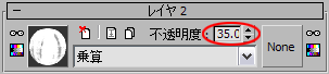 - [レイヤ 2](Layer 2)ロールアウトで、[不透明度](Opacity)設定を 35.0 に変更します。