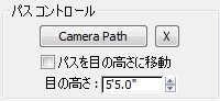 注: 既定値ではカメラは一定の速度で移動し、常に移動方向を指します。この設定はダイアログ ボックスの下部にある[拡張コントロール](Advanced Controls)ロールアウトに表示され、いずれのオプションも有効になっています。