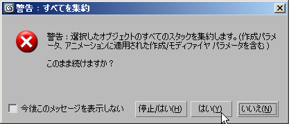 3ds Max によってスタックを集約することを警告するメッセージが表示されます。[はい](Yes)をクリックします。