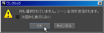 シーン全体が送信されることを警告するメッセージが表示されます。[OK]をクリックします。