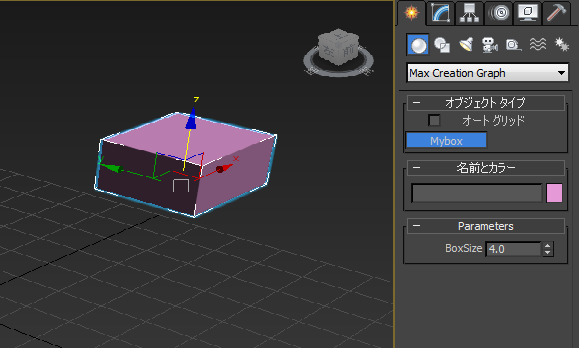 これによって、[Max クリエーション グラフ](Max Creation Graph)カテゴリの[オブジェクト タイプ](Object Type)ロールアウトの[MyBox]ツールが置き換わります。