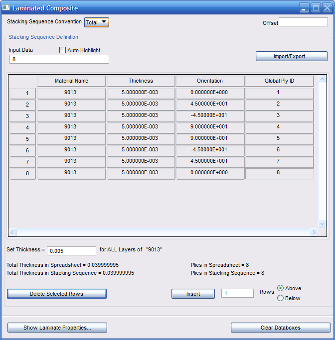 - 積層複合材料ウィンドウは、次のように表示されます。