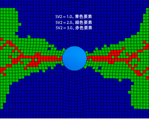 Helius PFA はいくつかの状態変数出力を生成します。この手順では、キー変数(SV2)を表示して解説します。SV2 は要素内の繊維破損および母材破損を追跡する状態変数です。