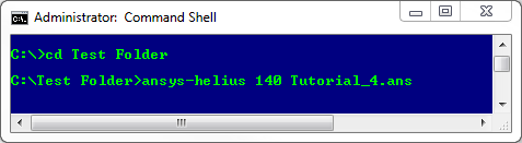 上記では、ansys-helius は、カスタム ANSYS の実行ファイルを使用してジョブを送信するバッチ ファイルを呼び出し、140 は ANSYS のバージョン(145 と 150 はその他の有効なオプション)で、Tutorial_4.ans は入力ファイル名です。