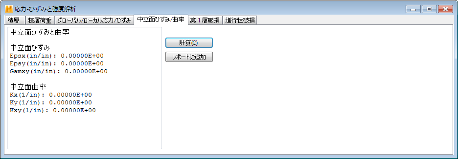 面内荷重および曲げ荷重によって生じる、積層の中立面の膜ひずみおよびベンド曲率を計算します。
