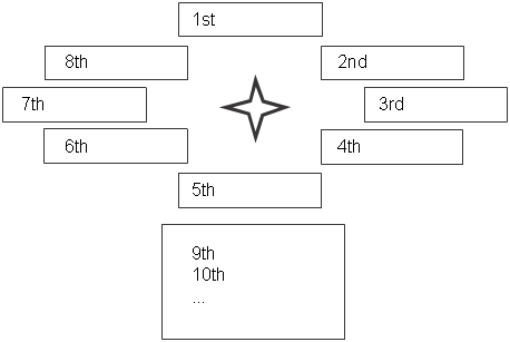 マーキング メニュー シェルフにツールとシェーダが並ぶ順番で、マーキング メニューにこれらが配置される位置が決まります。