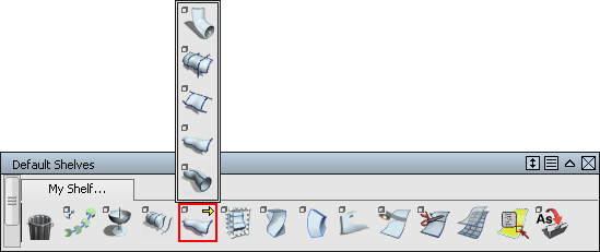 - Shelves ウィンドウが表示されていない場合、Windows > Shelves を選択します。
