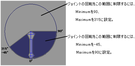 このようなSet機能の1つを実行した結果、Minimumの値がMaximum の値よりも大きくなってしまった場合、ジョイントリミットの範囲を有効にするために、MinimumとMaximumの値が入れ替えられます。