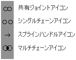 共有ジョイントアイコンは、このジョイントがシングルチェーンとマルチチェーンの両方によって共有されていることを表します。