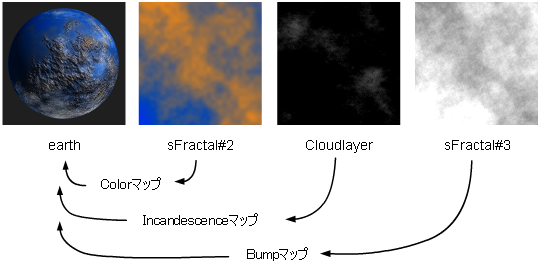 sFractal テクスチャは特定の度数分布(フラクタル)を使った 3 次元のランダム関数を表現し、いろいろな種類のエフェクトを作成するために使用できます。