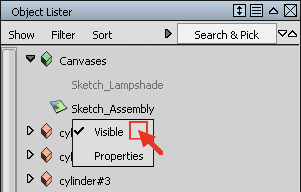 Object Lister を使用してスケッチをオフにし、ジオメトリを選択しやすくします。