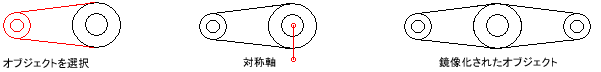 オブジェクトを鏡像化するには、そのオブジェクトの Mirror メソッドを使用します。このメソッドには、2 つの座標を入力します。指定した座標は対称軸の端点になり、その反対側に元のオブジェクトの鏡像が作成されます。3D の場合、この線分を含む UCS の XY 平面に垂直な鏡像平面が対称軸として使用されます。