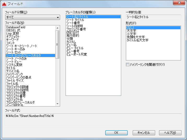 ヒント: シート セット カテゴリには、ビューとシートのフィールド含まれています。