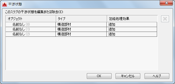 スラブ [スラブ]タブ[修正]パネル[干渉状態]ドロップダウン[干渉状態]をクリックします