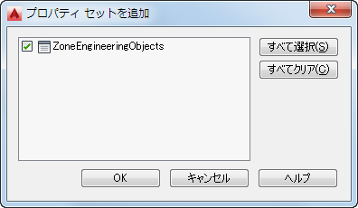 - [プロパティ セットを追加]ダイアログ ボックスで[ZoneEngineeringObjects]を選択し、[OK]をクリックします。