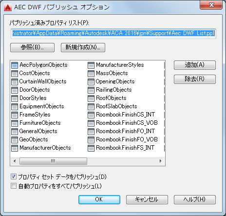 これにより、DWF または DWFx ファイルに書き出すように選択したオブジェクトに関連付けられているすべての自動プロパティがパブリッシュされます。