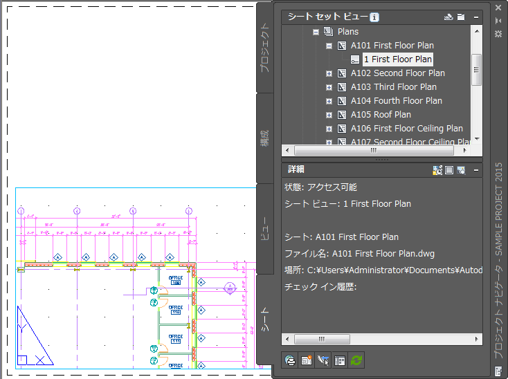 シート ビューは、シート上のペーパー空間ビューポートであり、プロジェクト ナビゲータ パレットのビュー図面またはモデル空間ビューをシートにドラッグした場合に作成されます。