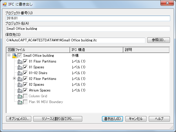 図面を IFC ファイルとして書き出し、選択した外部参照を含めるには、次の操作を実行します。書き出す図面は、作図画面でアクティブにする必要があります。これは、既定で (Ifc)Site へマップされます。