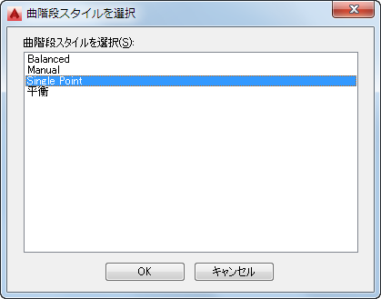 注: 図面に存在している曲階段スタイルだけが表示されます。