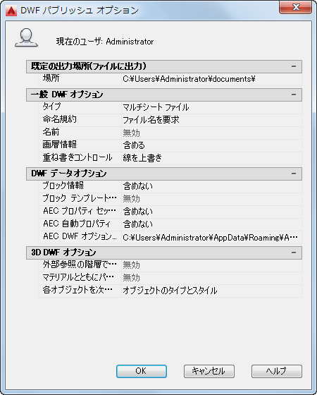 図面を保存したときや閉じたときに自動的に PDF 形式(または DWF、DWFx)にパブリッシュされるように指定できます。自動パブリッシュ設定では、モデルやレイアウトを含めるかどうかや、複数シート ファイルまたは単一シート ファイルのいずれをパブリッシュするかも指定できます