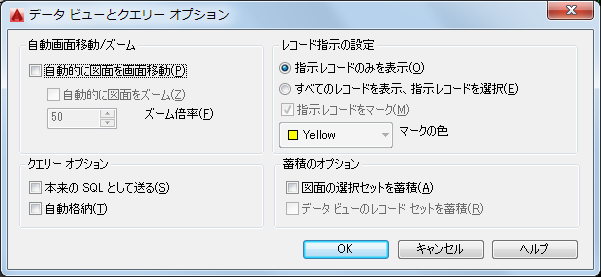 すべての使用可能なオプションの説明は、『コマンド リファレンス』の「DBCONNECT[データベース接続]」の「[データ ビューとクエリー オプション]ダイアログ ボックス」を参照してください。