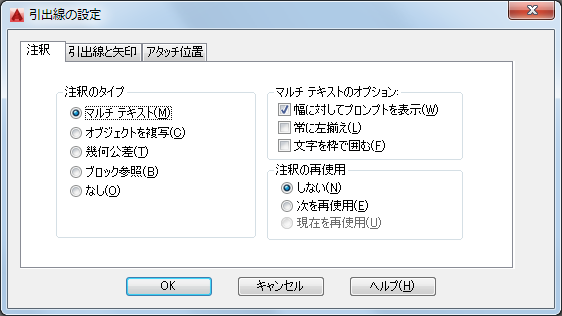 引出線の注釈を再使用するためのオプションを設定します。
