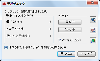オプションを選択している場合は、ダイアログ ボックスを閉じるときに干渉オブジェクトが削除されます。