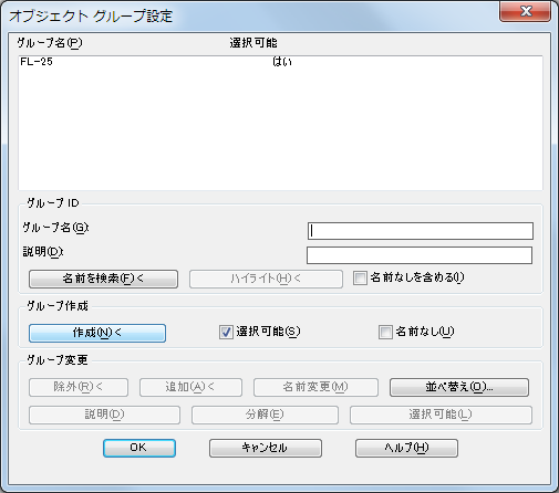 選択したオブジェクトから、[グループ名]と[説明]ボックスに入力されている名前と説明を使用して、新しいグループを作成します。