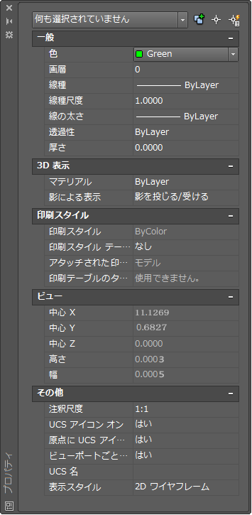 選択したオブジェクトがない場合、上記のハイライト表示されたドロップダウン リストに図面の現在の設定が表示されます。オブジェクトを選択した場合、ドロップダウン リストにオブジェクトのプロパティ設定が表示されます。