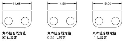 角度寸法を除くすべての寸法値を丸めることができます。たとえば、丸め値として 0.25 を指定すると、すべての寸法値が、0.25 の倍数に最も近い値に丸められます。小数点以下の桁数は、基本単位、変換単位、および寸法許容差の精度によって異なります。