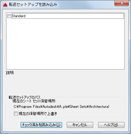 指定したシート セット データ ファイルから、選択した転送セットアップが読み込まれます。