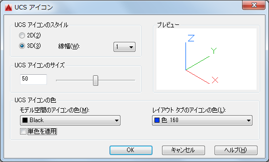 モデル空間での UCS アイコンのプレビューが表示されます。