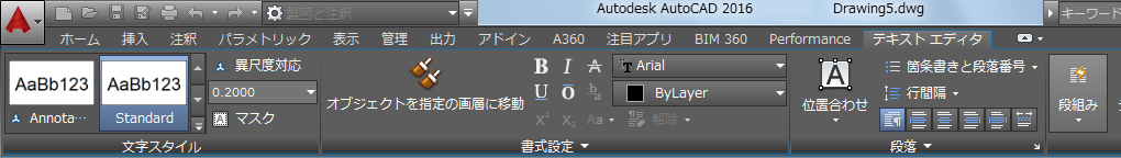 リボンは、図面の作成や修正に必要なすべてのツールのコンパクトなパレットを提供します。次のいずれかの位置に配置できます。
