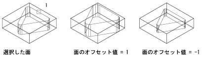 オフセットのサイズを設定します。正の値を指定すると、ソリッドの外周の内側にシェルが作成されます。負の値を指定すると、ソリッドの外周の外側にシェルが作成されます。