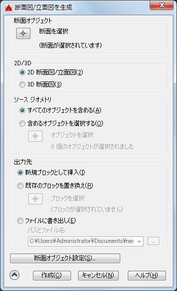 2D 断面図および 3D 断面図をブロックとして保存します。