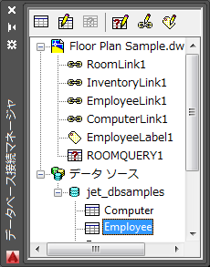 現在開いている各図面のノードとデータ ソース ノードが表示されます。データ ソース ノードには、使用システムで環境設定されている、使用可能なデータ ソースがすべて表示されます。