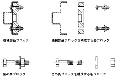 他のブロックを含むブロック参照を「ネストされたブロック」といいます。ブロックの中にブロックを作成することにより、複雑なブロック定義の構成を単純化できます。