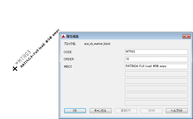 モーター回路を選択すると、特別なモーター セットアップ/注釈関数が呼び出されます。この特別な関数は、テンプレート上のマーカー ブロックで CODE 値によってフラグが立てられ、[UI_TITLE]フィールドに「!MCC_CTRL」とマークされた回路コード シートの行にマッピングします。この関数は ace_electrical_standards.mdb ファイルを参照して、選択した一連のモーター入力パラメータの全負荷電流と配線サイズ値を判断します。