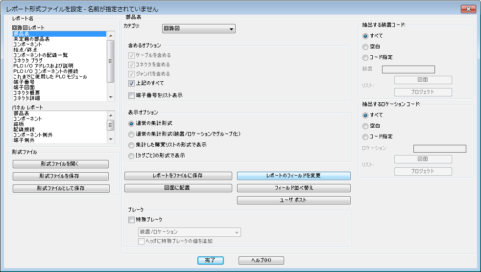 レポート用の形式ファイル(.set)を作成または編集します。形式ファイルでは、レポートに含めるフィールド、フィールドの順序、表オプションなどを定義します。