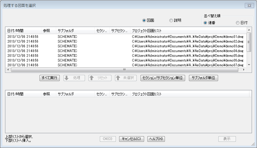 [プロジェクトの印刷]を選択した場合は、印刷するプロジェクトの図面を選択することができます。