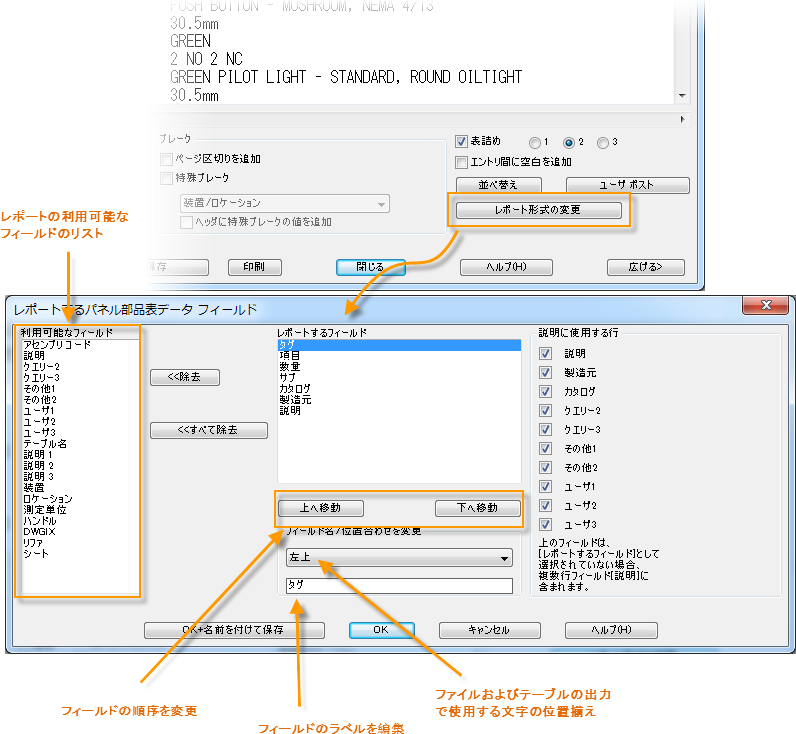 レポートの実行後は、フィールドを追加および除外したり、フィールドの順序を変更したり、フィールド ラベルを変更することができます。