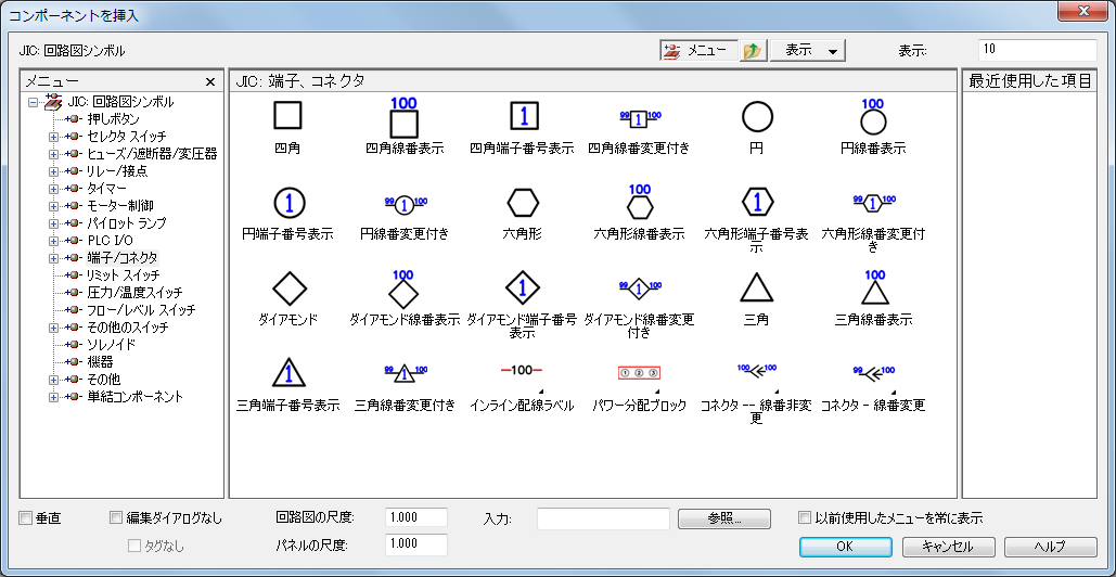 端子台全体を管理するには、端子台エディタを使用します。カタログ割り当ての変更、ジャンパの追加、端子の関連付け、スペアおよびアクセサリの追加、パネル端子台の挿入などを実行できます。後続の「パネル レイアウト」のトピックでは、端子台エディタの使用方法について説明します。 検索