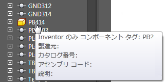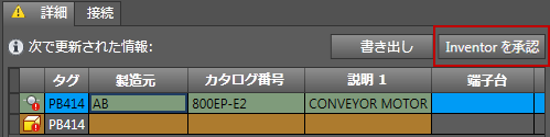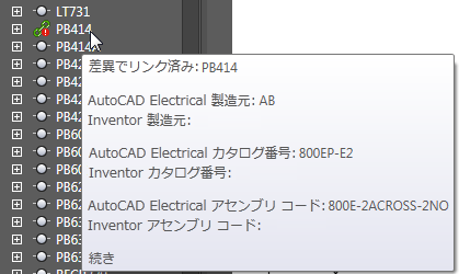 ツリーで、もう一方のリプレゼンテーションを特定して選択します。この例では、AutoCAD Electrical コンポーネントから開始したため、Inventor の押しボタンを選択します。