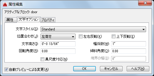 属性文字の文字スタイルを指定します。この文字スタイルの既定値が、このダイアログ ボックスに表示されている文字プロパティに割り当てられます。