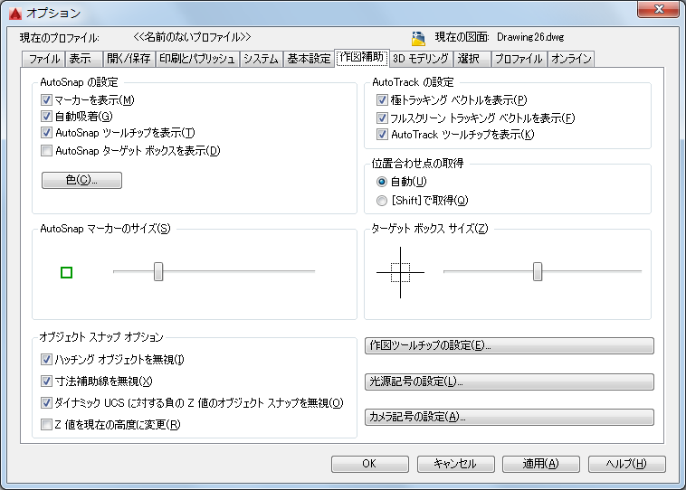 AutoSnap および AutoTrack などの編集機能のオプションを設定します。