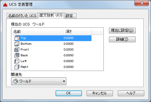 [直交投影 UCS]タブ([UCS 定義管理]ダイアログ ボックス)
