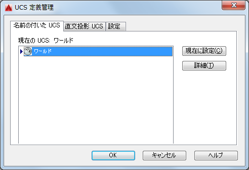 複数のビューポートや複数の名前のない UCS 設定がある場合、現在のビューポートの名前のない UCS のみが一覧表示されます。