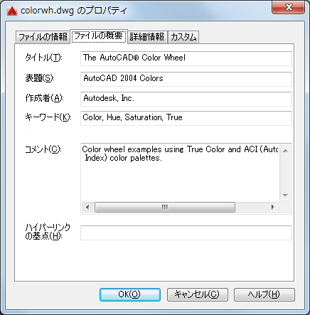 図面内に挿入されるすべての相対リンクに使用する基本アドレスを指定します。たとえば、http://www.autodesk.co.jp のようなインターネット アドレスや、ネットワーク ドライブ上のフォルダへのパスを指定できます。
