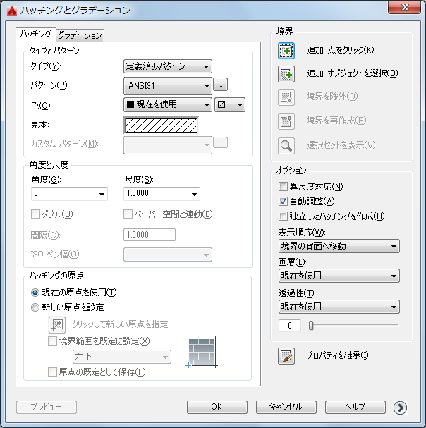 共通のオプション([ハッチングとグラデーション]ダイアログ ボックス)