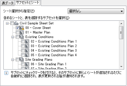 以前に保存したシート選択に基づいて、下に表示されている項目のチェック ボックスのオン/オフを設定します。